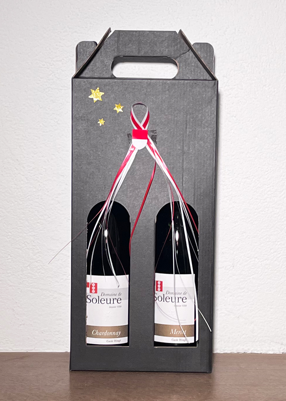 Das Geschenkpäckli enthält:75cl Chardonnay Cuvée Wengi, AOC Neuchâtel75cl Merlot, VDP des Trois-Lacs